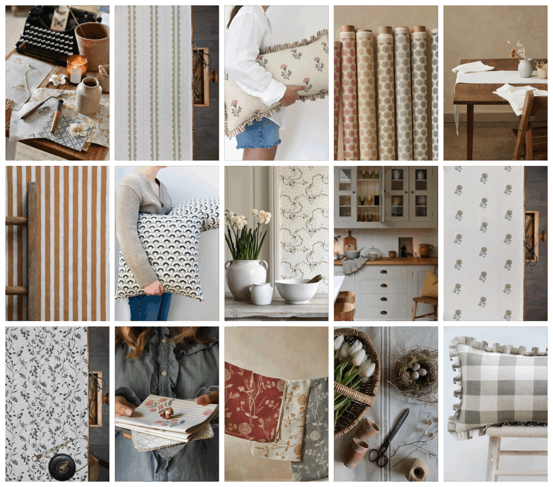 wallpapers Shop Now patterned fabrics Shop Now plain linens Shop Now new trimmings Shop Now frilly cushions Shop Now sale Shop Now new wallpapers Shop Now new fabrics Shop Now For the love of Sisal today. I think it’s my favo A sweet little stash of wallpapers this morning, p Cosy vibes this morning teaming up green and earth Happy New Year everyone. We are back at it and lo Happy New Year everyone. Such a beautiful bathroom Happy New Year! We hope you had a fabulous New Ye Packed up all your lovely samples in the office to Hope you all had a wonderful Christmas. Love this Merry Christmas everyone we hope you have a truly Love this time of year, spending time with my girl Instagram As seen in Craft Packs Style book