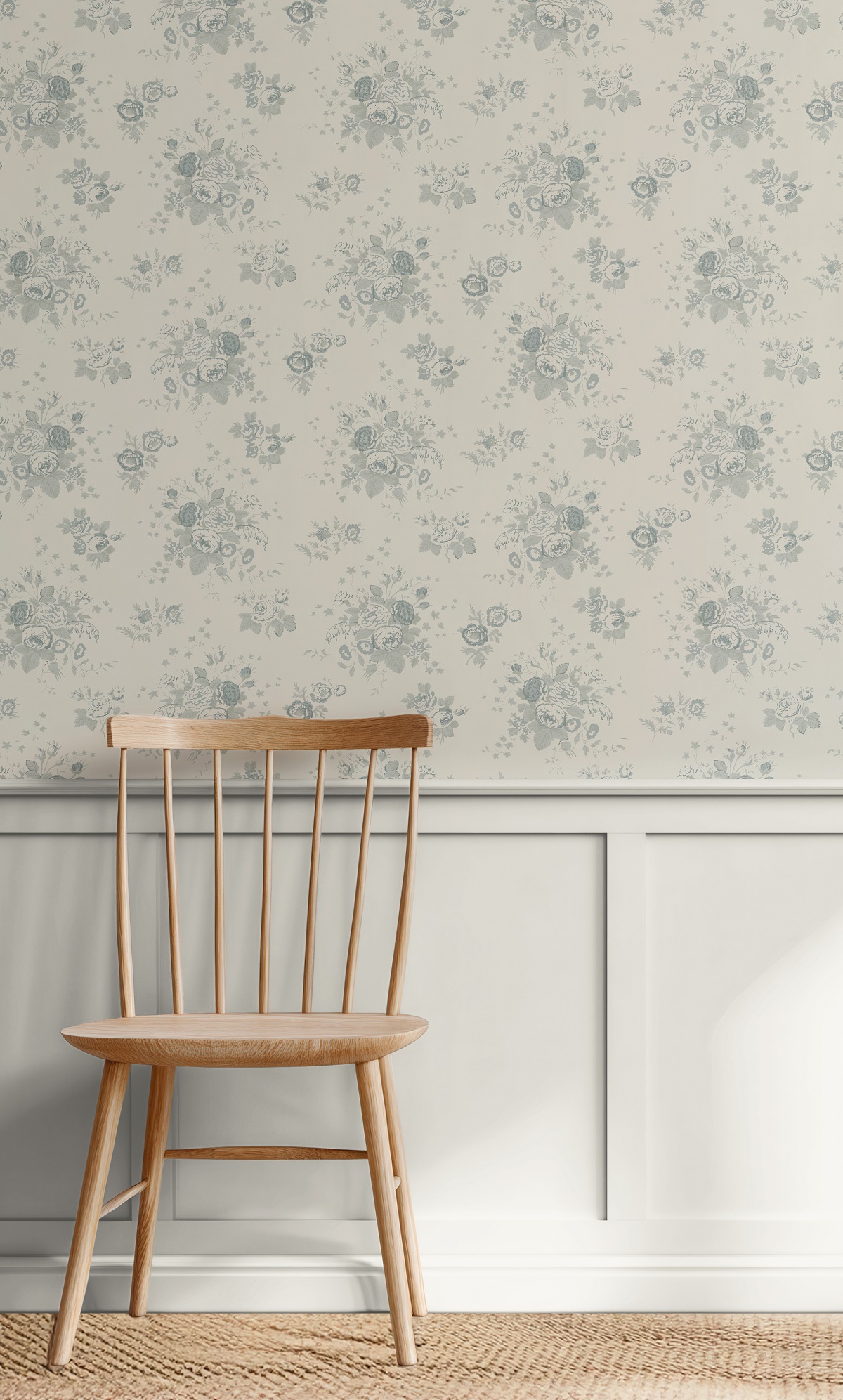 Bella Rosa Smokey Blues Wallpaper on Cream