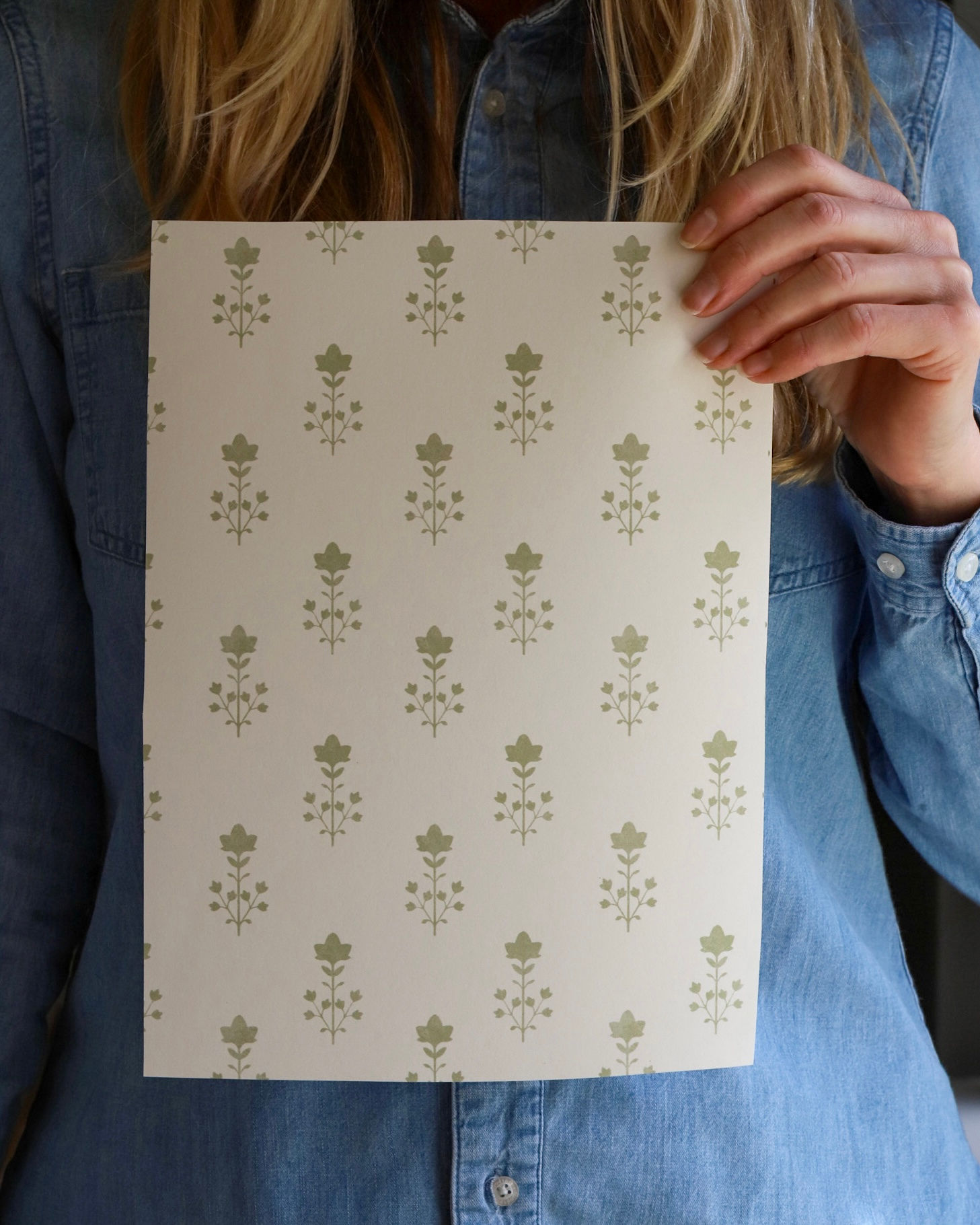 Camilla Wallpaper Olive on Cream