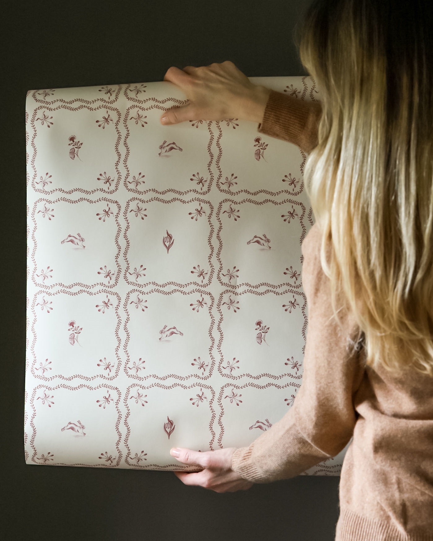Beautiful hand painted design inspired by delft tiles creating our own designs, we thought this would be charming in a cloakroom or little girls room, available in 3 colourways. Lovely with our Plains in Bracken and Sludge, Punch and Judy Stripes in Terracotta and Forest Green and Sisal, and lovely with Forest Green Tulip Trellis which has the same tulip in the design.