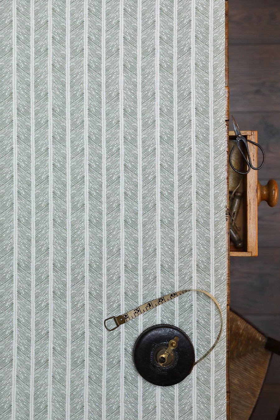 Scallop Vertical Ticking Olive (Mid) on Ivory Linen