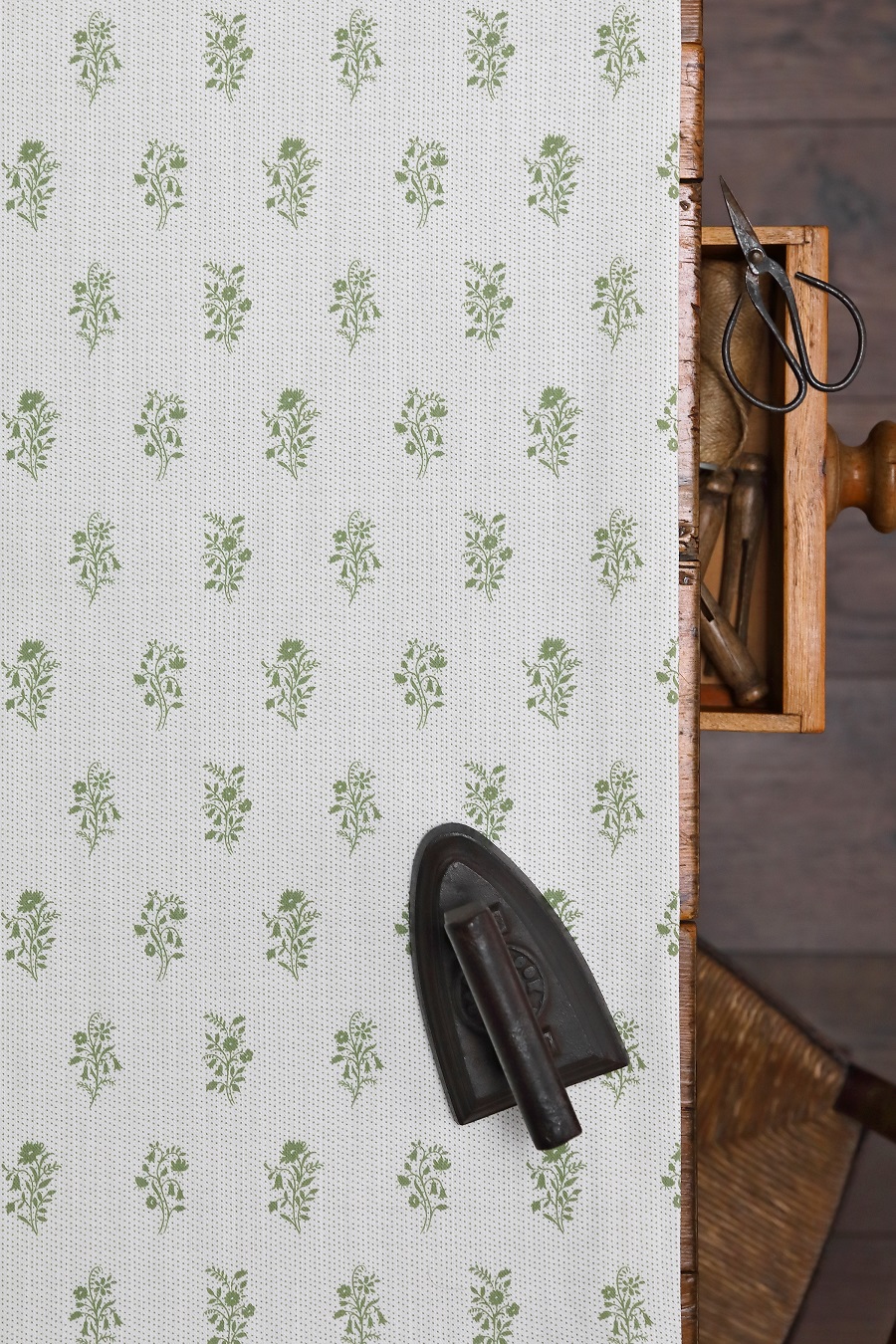 Imogen Green Grass Dotted on White Chunky Linen Union