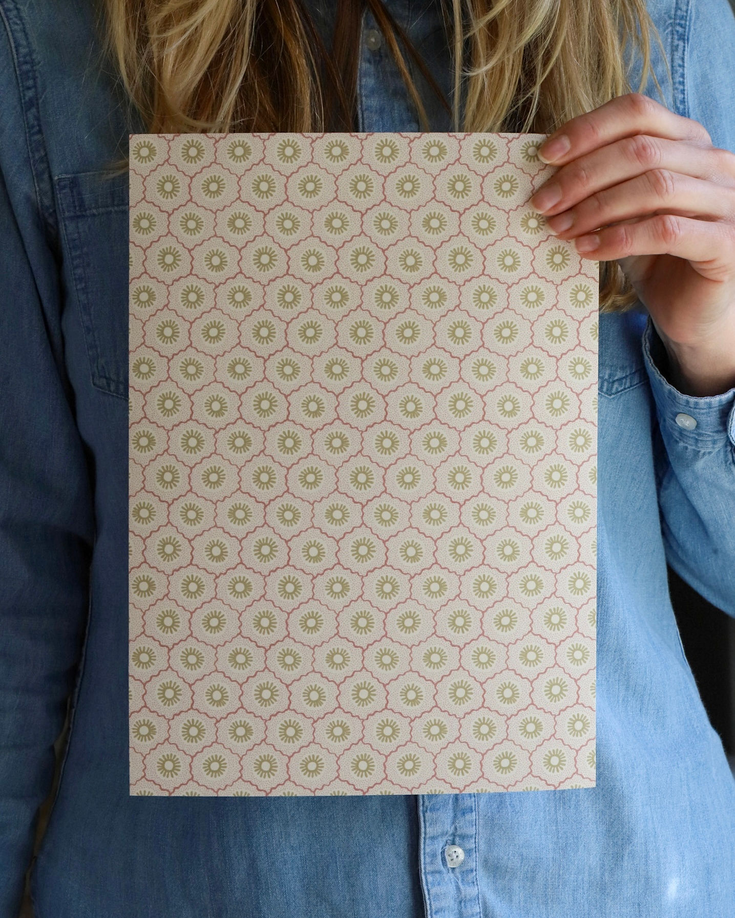 Libertine Mini Scale Wallpaper Olive Daisy, Salt Pink Dots and Dark Earth Ribbon