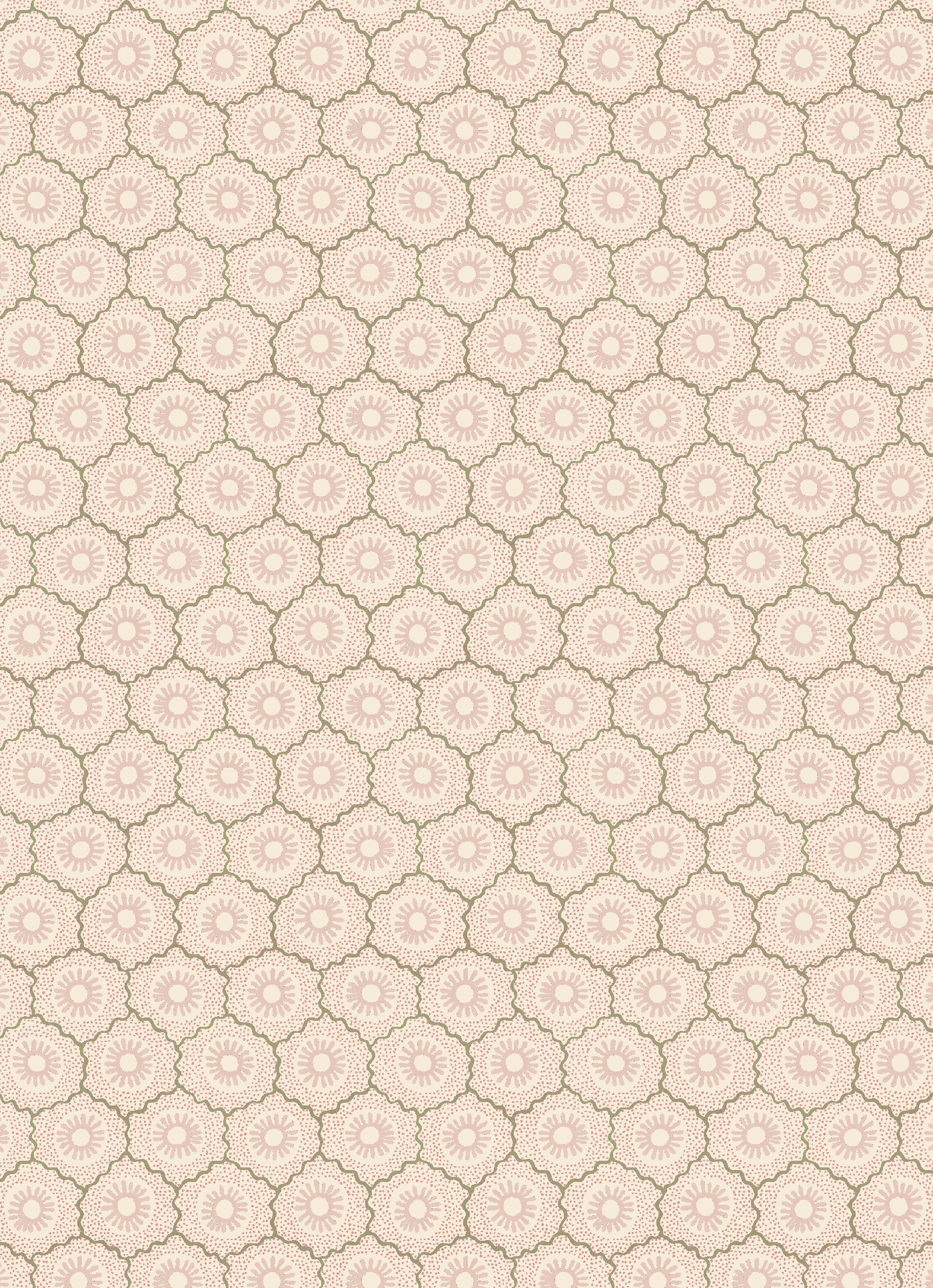 Libertine Mini Scale Wallpaper Salt Pink Daisy, Dark Earth Dots and Olive Ribbon