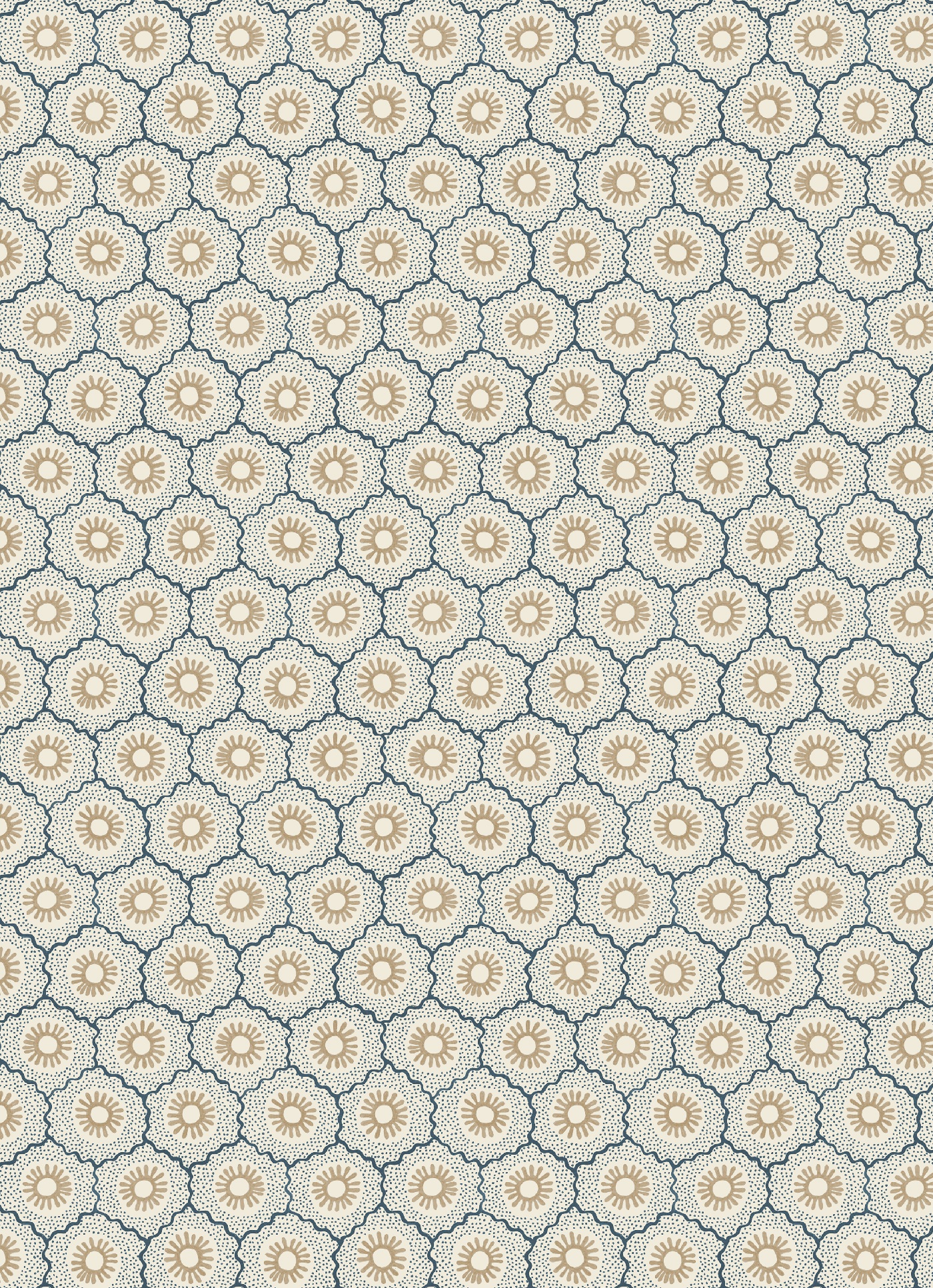 Libertine Mini Scale Wallpaper Wheat + Navy Blue