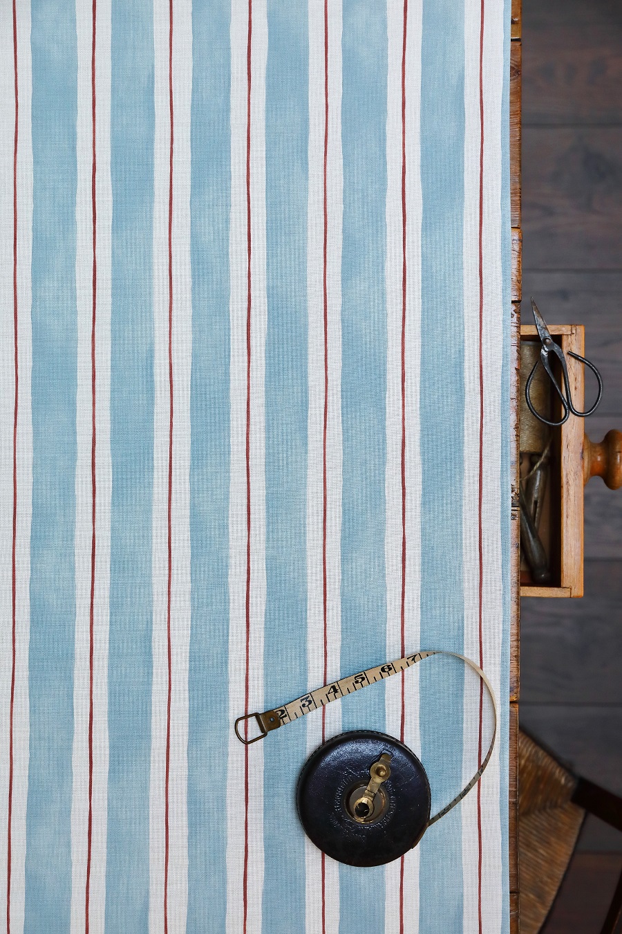 Painted Stripes Salcombe Blue and Red on Cream Linen