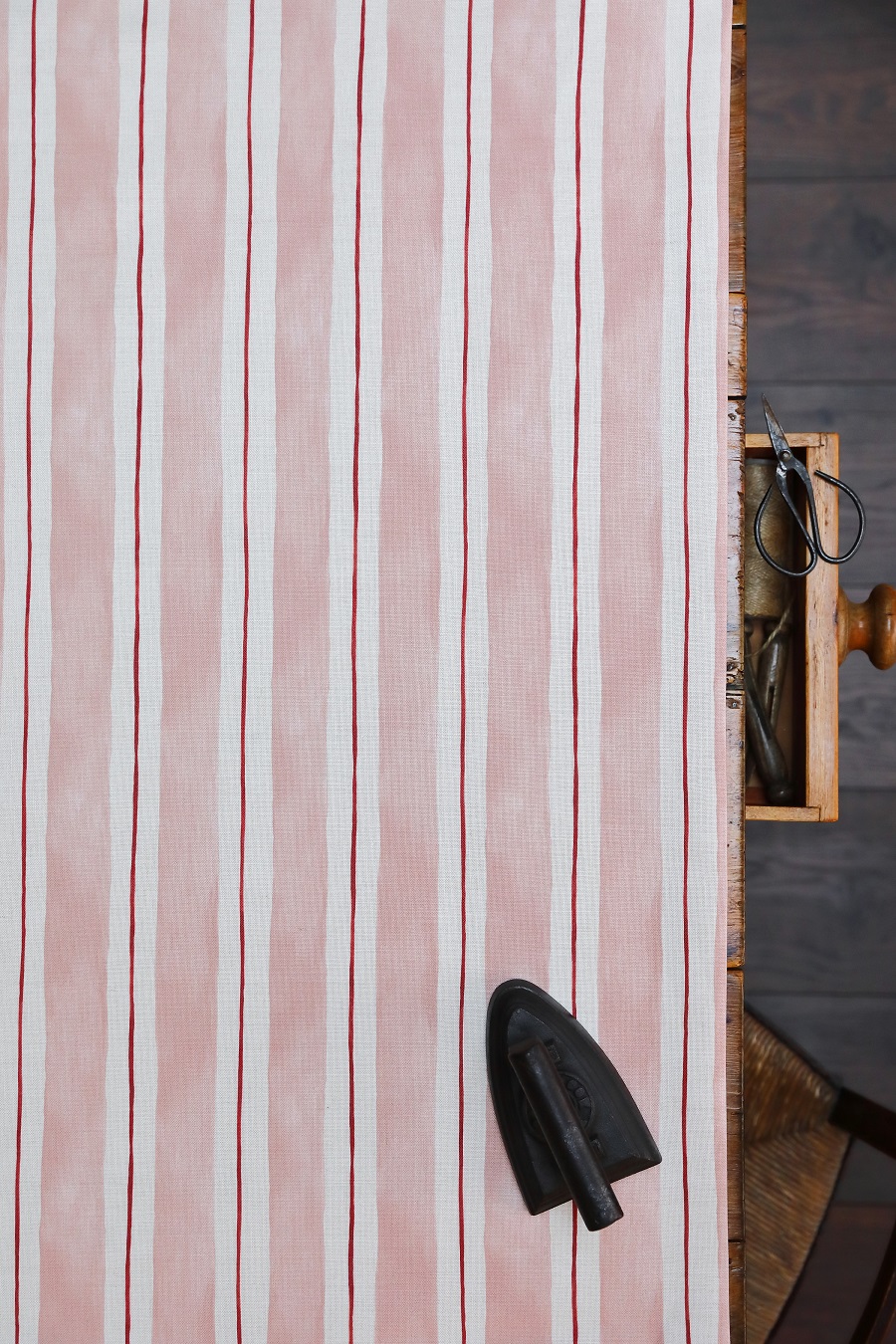 Painted Stripes Sand Pink and Red on Cream Linen