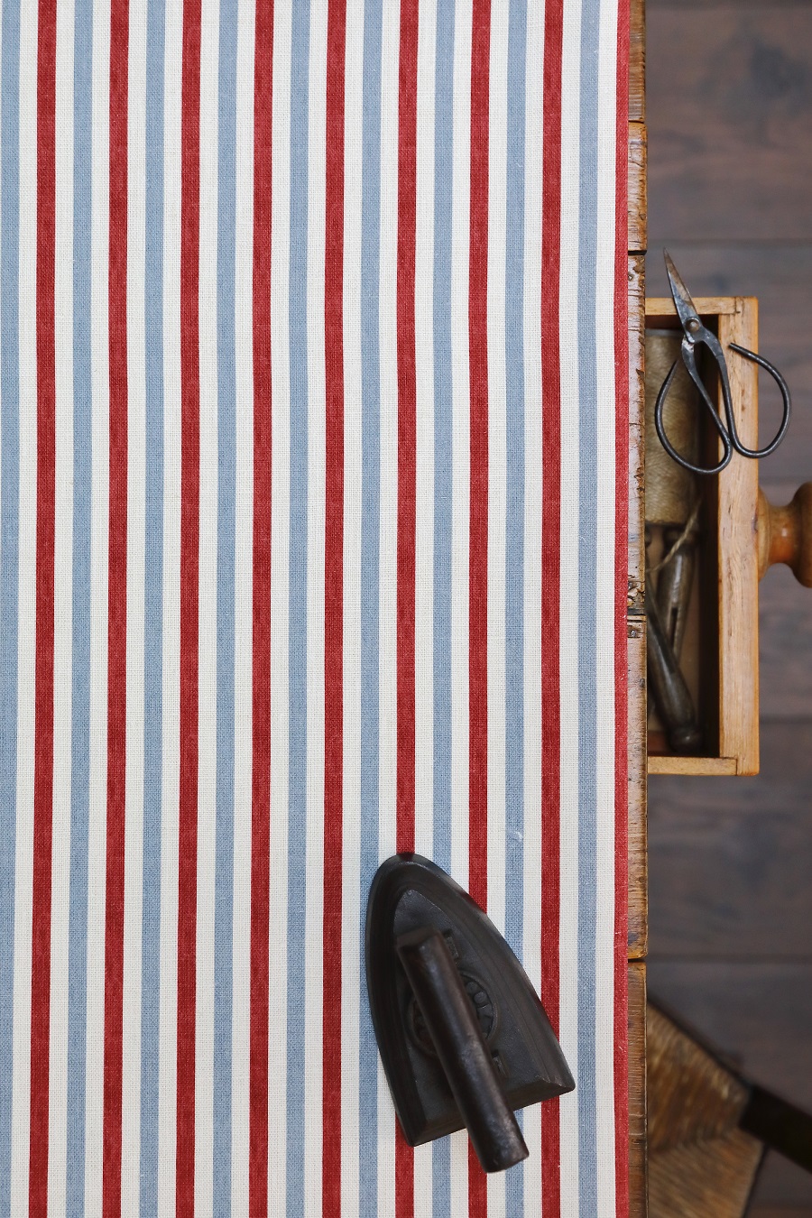 Mini Picchu Linen Salcombe Blue + Red on Cream Linen