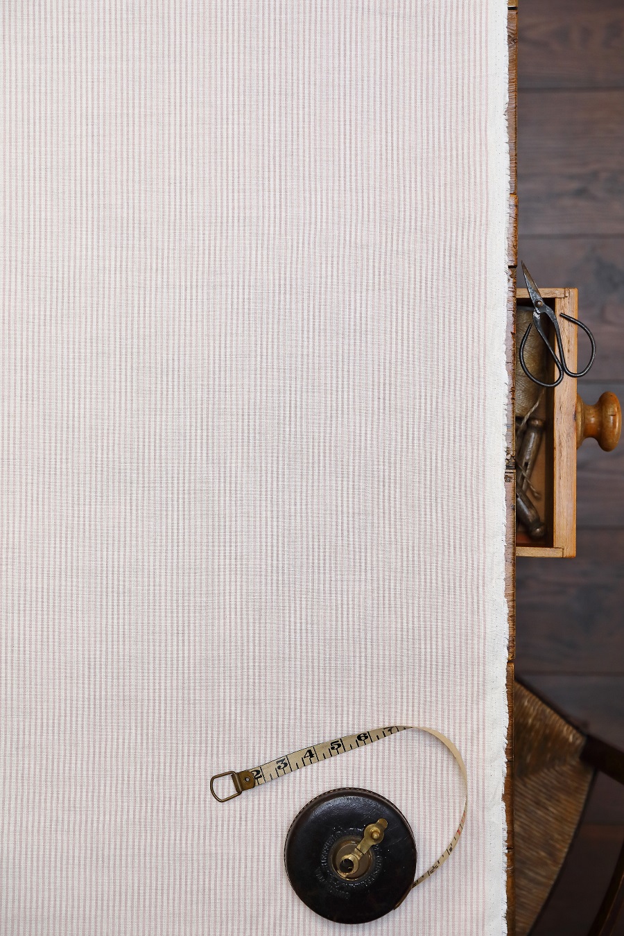 Skinny Pinstripe ~ Antique Dusty Pink on Cream Linen