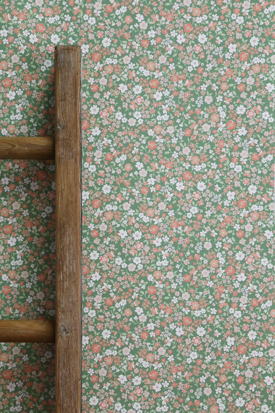 We adore this colourway, perfect in a cottage in a little girls room / downstairs loo with green or terracotta panelling.