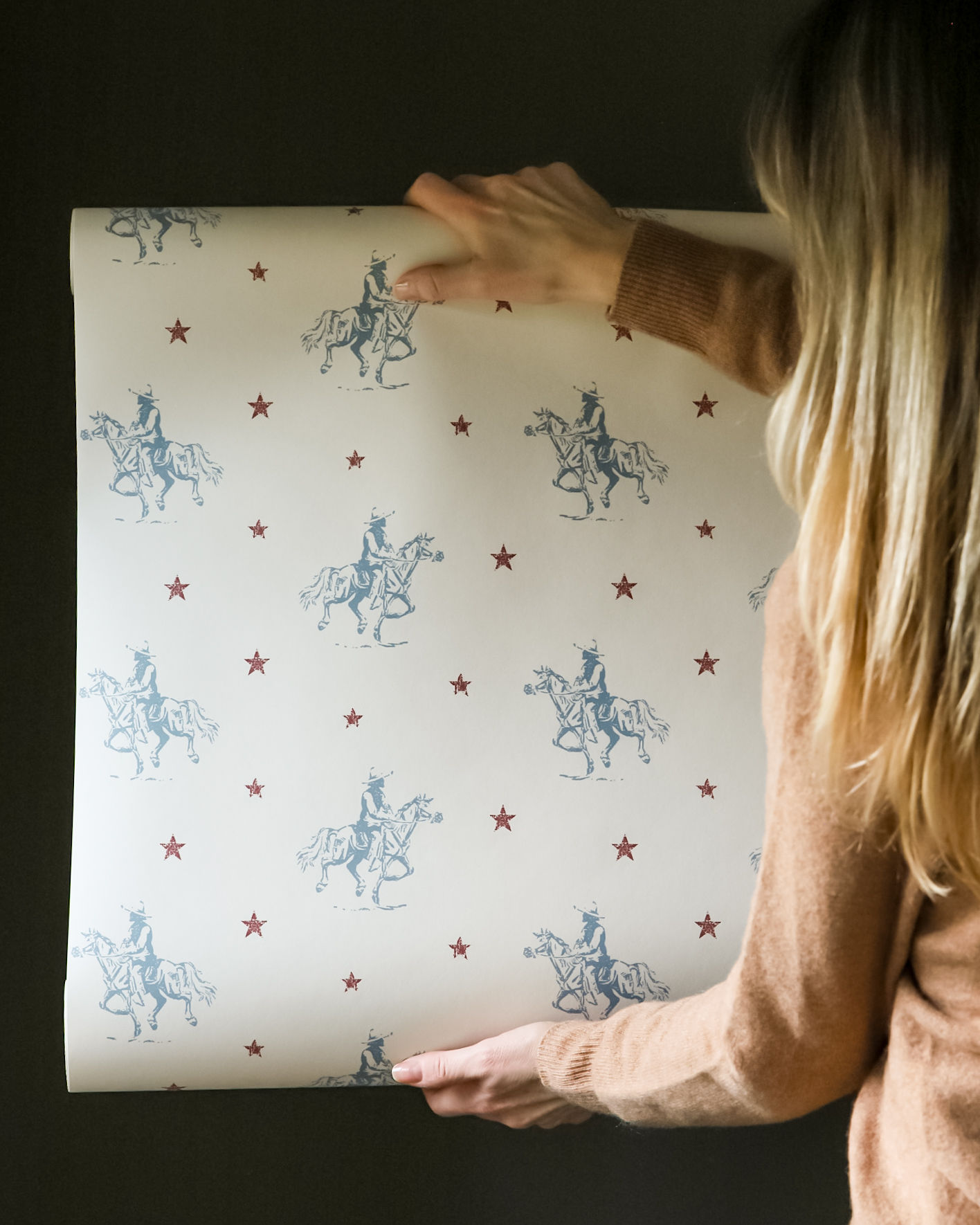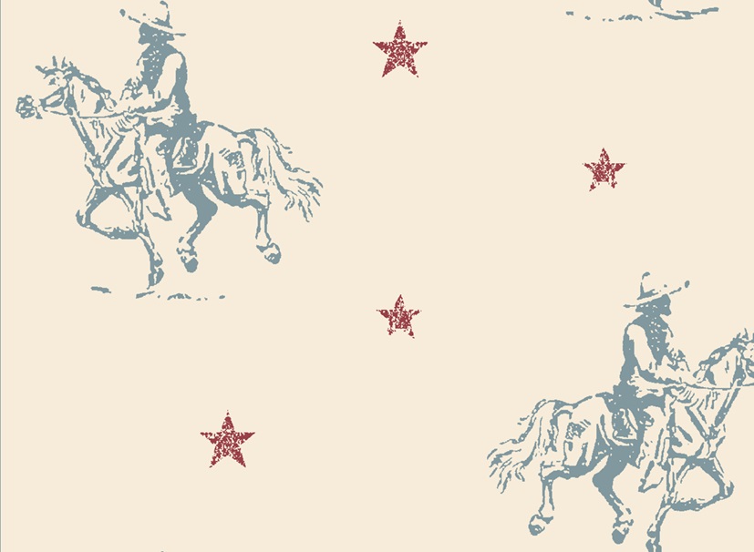 Vintage Cowboys Large Wallpaper Salcombe Blue and Red