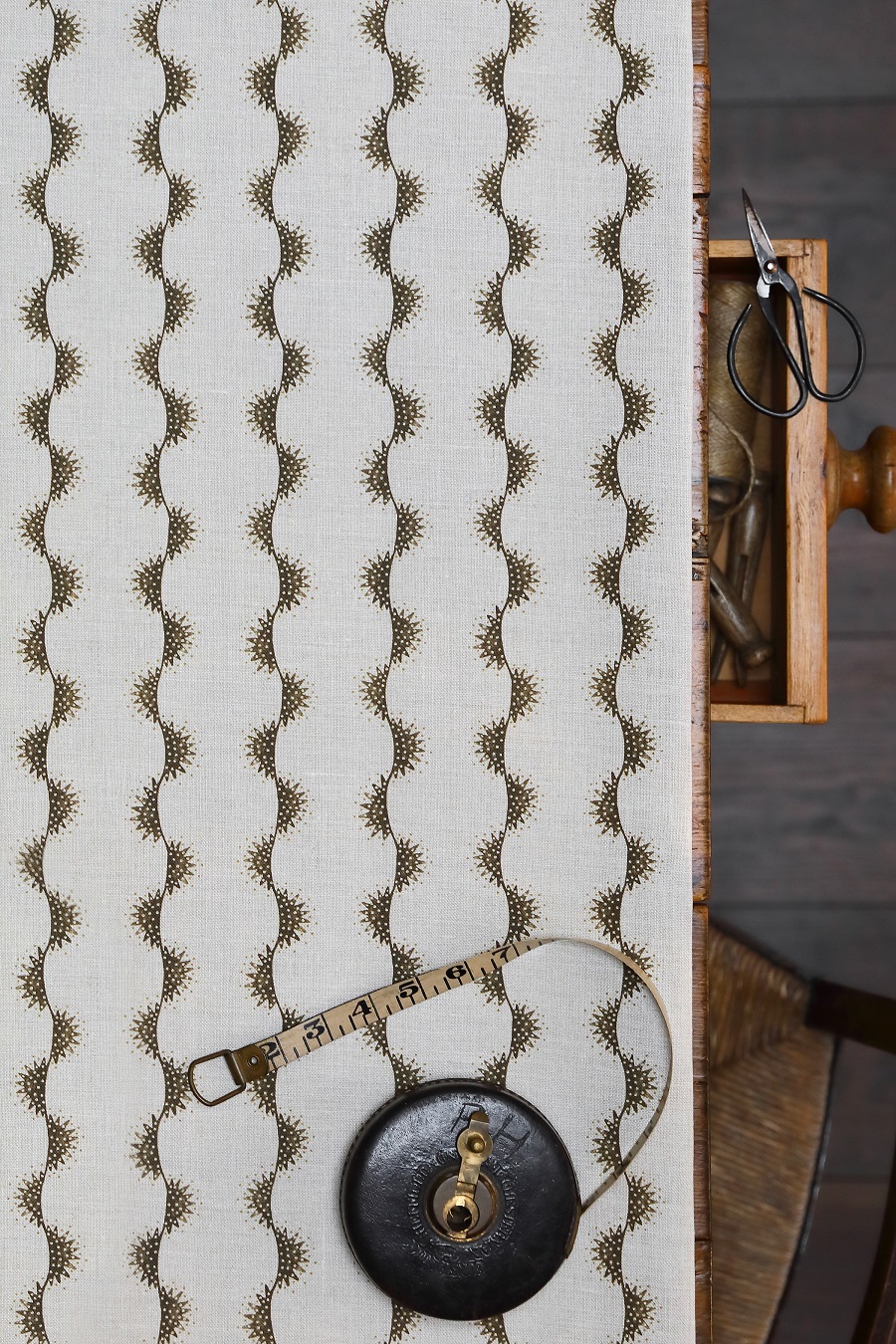 Zadir Stripe Small Olive Dotted on Stone Linen